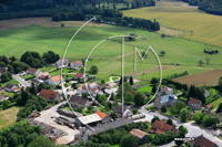 Mairie, église, centre-ville, stade, plan, hameau, quartiers, entreprises : tout cela vu du ciel !